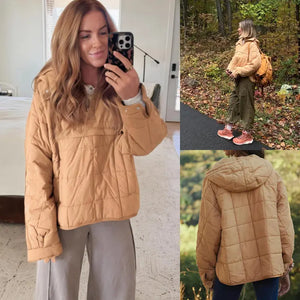 Lightweight quilted insulation traps heat without bulk so you stay warm on city walks. Pull the hoodie on in seconds and keep hands free with roomy pockets for phone and wallet.